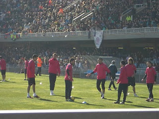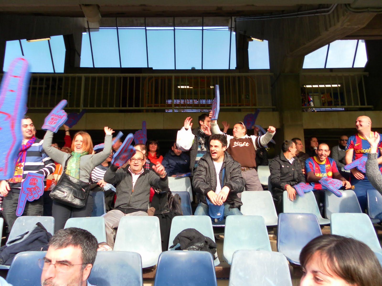 Va ser molt emocionant, perquè els nois i noies de SIQUE! mai havien pogut gaudir del seu futbol des de tan a prop! A més, els jugadors van voler compartir aquesta experiència amb tots nosaltres i ens van signar autògrafs, es van fer fotos….Ah! I ens van donar un obsequi molt divertit, una ma gegant que ens servia per poder animar a tot l’equip.