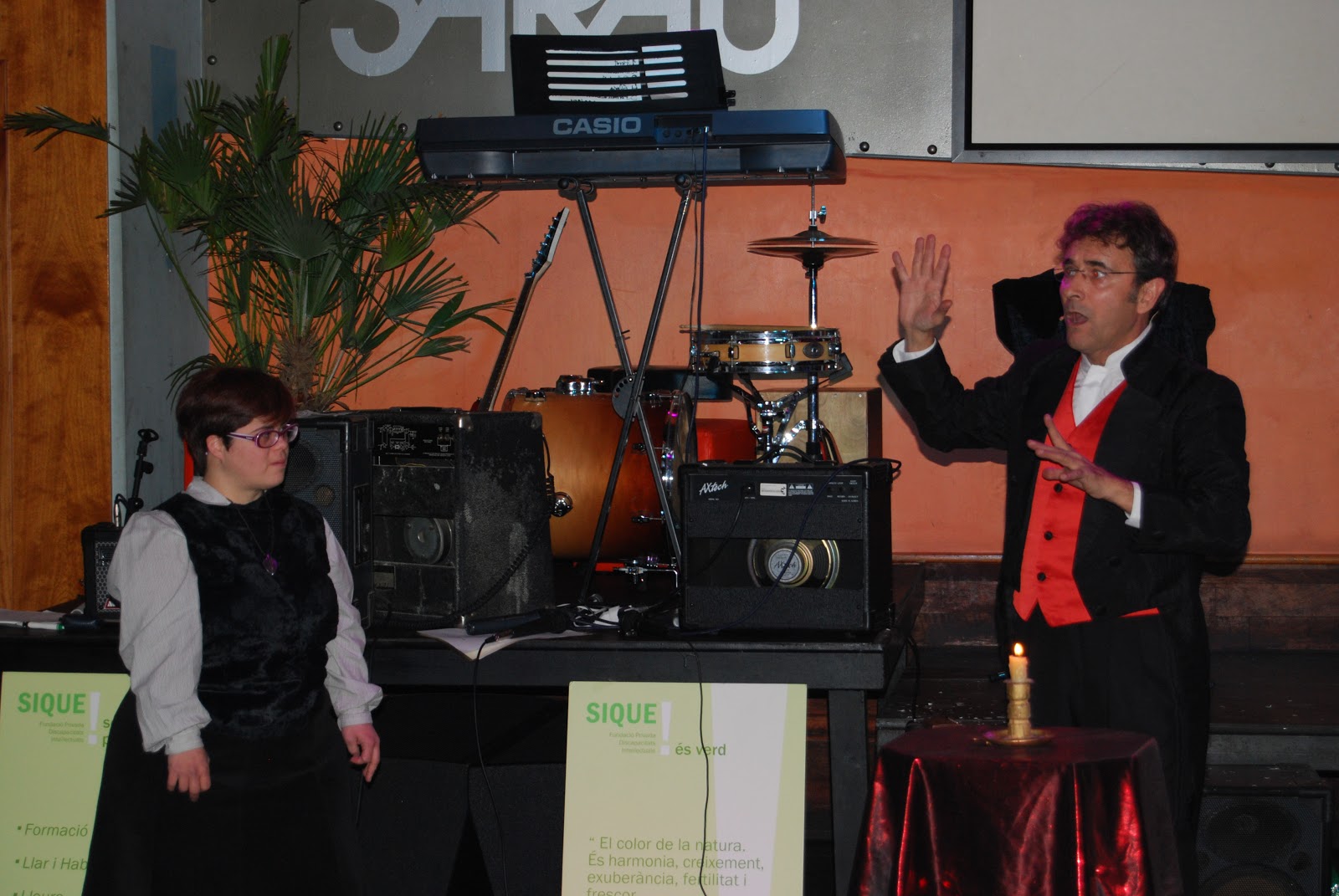 En aquesta edició comptavem amb la presència i actuació del Mag Magoo, que a part de fer uns trucs espectaculars que ens van deixar bocabadats, va portar el fil conductor de la vetllada. L’actuació del grup musical SIQUE!ES MUSICA juntament amb alguns dels components del grup “The Mortimers”, van amenitzar la festa amb algunes cançons del seu repertori i també de noves. A la pausa es va servir el catering i tothom es va acostar a la barra per picar, beure i xerrar una estoneta. El punt i final el va posar el Mag Magoo amb la seva actuació i el sorteig de regals cedits per empreses i comerços que alguns dels assistents van tenir la sort d’emportar-se.